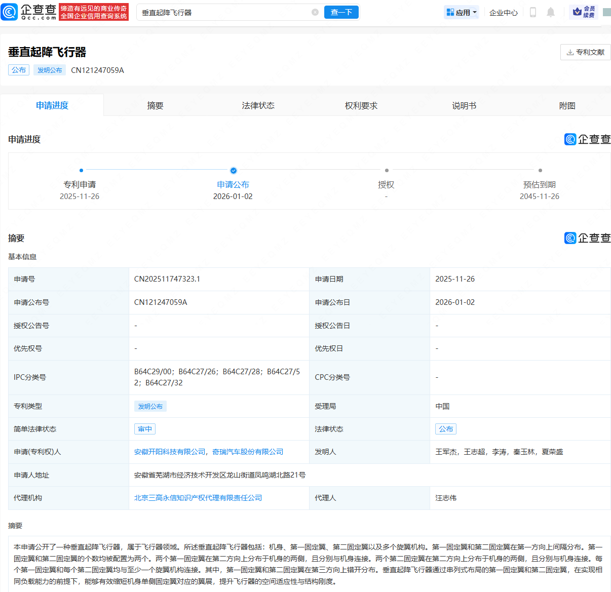 近日,奇瑞汽车(09973.HK)申请公布“垂直起降飞行器”专利。专利摘要显示,本申请公开了一种垂直起降飞行器,属于飞行器领域。所述垂直起降飞行器包括:机身、第一固定翼、第二固定翼以及多个旋翼机构。第一固定翼和第二固定翼在第一方向上间隔分布。第一固定翼和第二固定翼的个数均被配置为两个。两个第一固定翼在第二方向上分布于机身的两侧,且分别与机身连接。两个第二固定翼在第二方向上分布于机身的两侧,且分别与机身连接。每个第一固定翼和每个第二固定翼均与至少一个旋翼机构连接。其中,第一固定翼和第二固定翼在第三方向上错开分布。垂直起降飞行器通过串列式布局的第一固定翼和第二固定翼正规好的配资平台,在实现相同负载能力的前提下,能够有效缩短机身单侧固定翼对应的翼展,提升飞行器的空间适应性与结构刚度。
